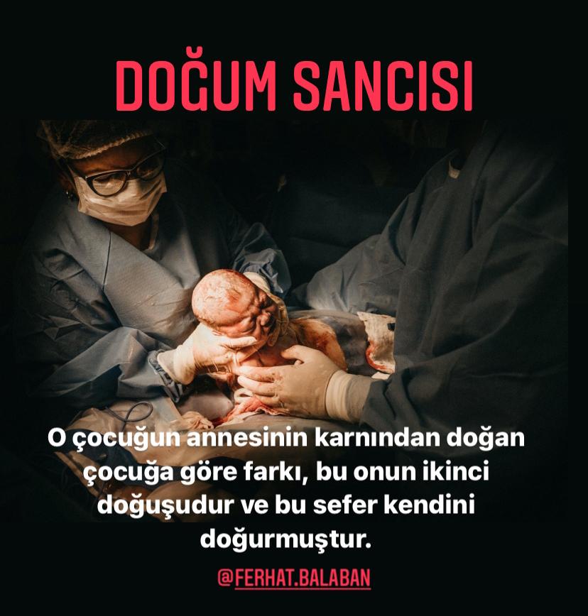 Doğum anı sancılıdır. Anne bebeğini doğururken çok acı çeker ve bebek doğduğu anda acıyı unutup çok mutlu bir ruh hali içine girer.